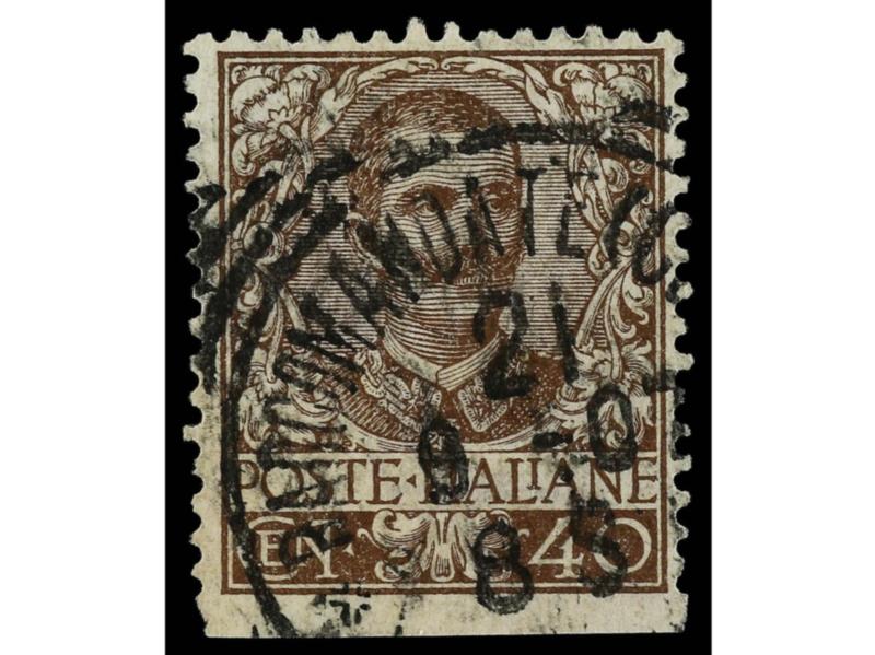 ITALIA. 1901. 40 c. castaño. Variedad SIN DENTAR MARGEN INFERIOR. Cert. DIENA. Sa.74 var. (Image1)