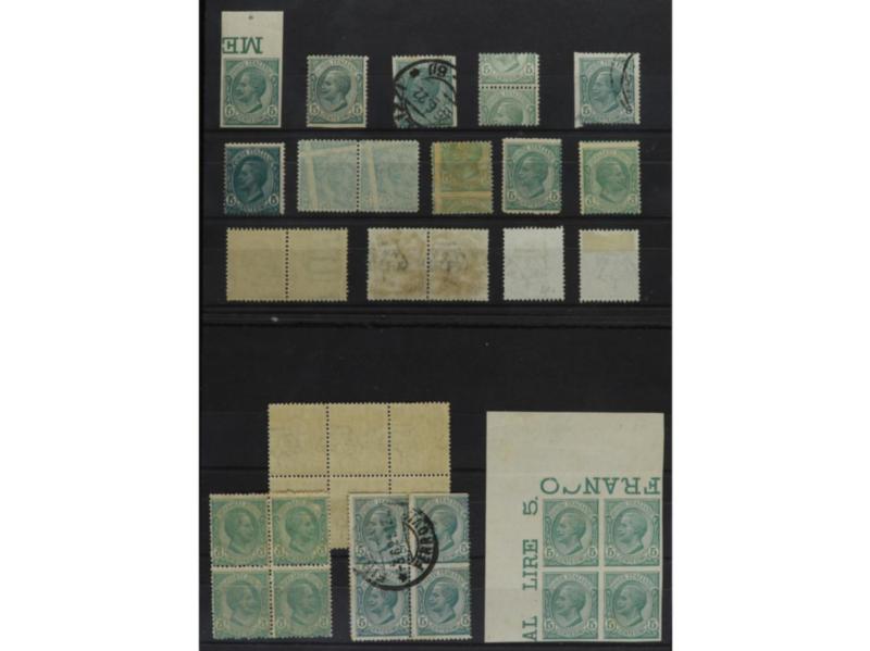 ITALIA. 1906. 5 c. verde. 18 ejemplares con distintas VARIEDADES DE DENTADO E IMPRESIÓN. Sa.81 (18). (Image1)