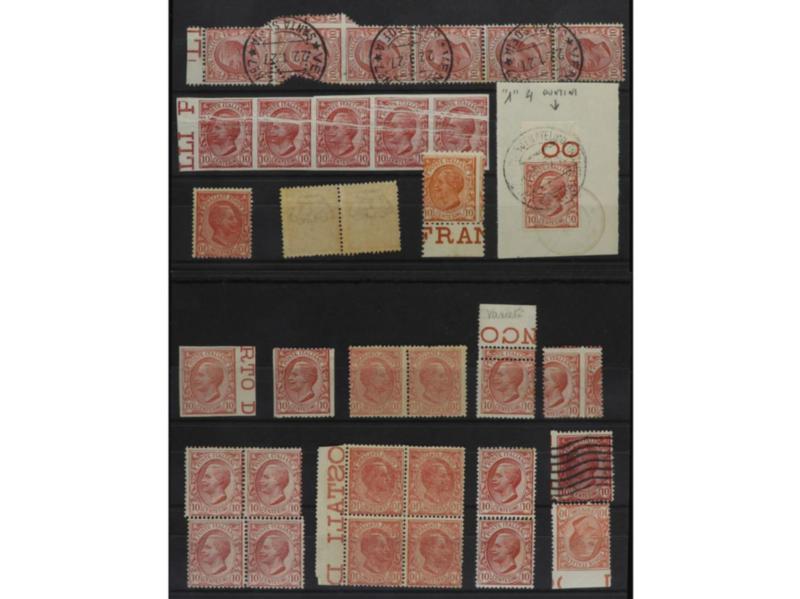 ITALIA. 1906. 10 c. rosa. 16 ejemplares con distintas VARIEDADES DE DENTADO E IMPRESIÓN. Sa.82 (16). (Image1)