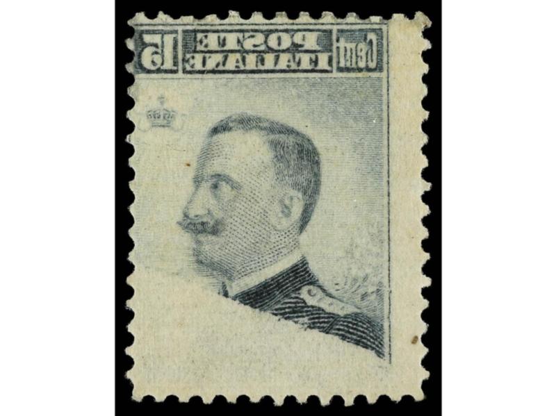ITALIA. 1909. 15 c. gris negro. Variedad CALCADO AL DORSO. Sa.86b. Cat. 850€. (Image1)