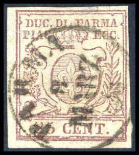 25 C. lilabraun, frisches Luxusstück mit zentr. K1 PARMA, sign. A.Diena. (Sassone 10 = 550,-)(Image 1)(Image)