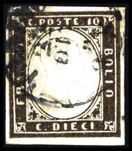10 C. schwarzbraun, voll- bis breitrandiges, gestempeltes Kabinettstück. Katalogpreis: 1.000,-(Image 1)(Image)