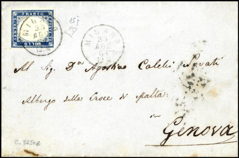 20 C. hellblau, Kabinettbrief mit sauber aufges. K1 MILANO 23/8 64 nach Genua, sign. E.Diena. (Sassone 15f = 1.050,-)(Image 1)(Image)