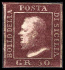 20 C. dunkelviolett, breitrandiges, ungebrauchtes Prachtstück mit vollem Originalgummi (kl. transparenter Punkt und herstellungsbed. Gummibug). Eine sehr seltene Marke, Fotoattest Cardillo. (Sassone 15a = 7.000,-) Katalogpreis: 2.500,-(Image 1)(Image 2)
