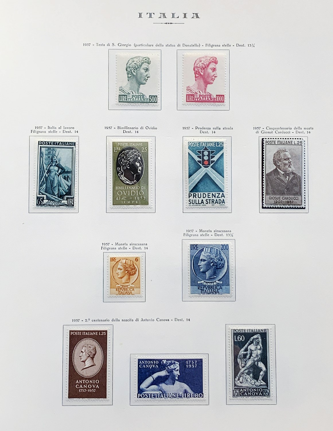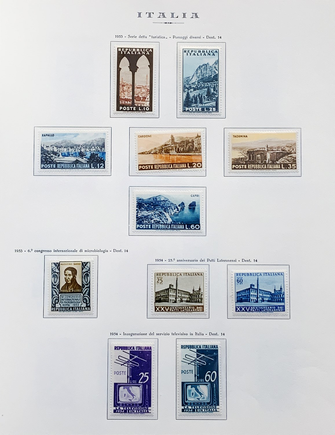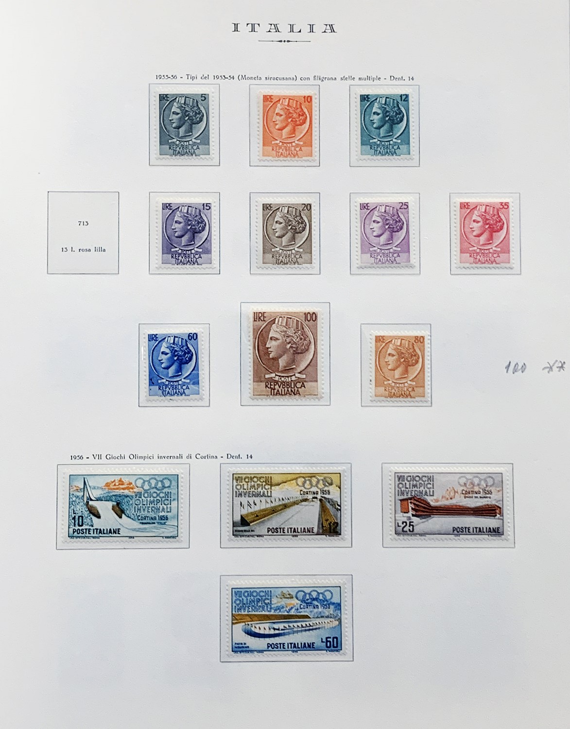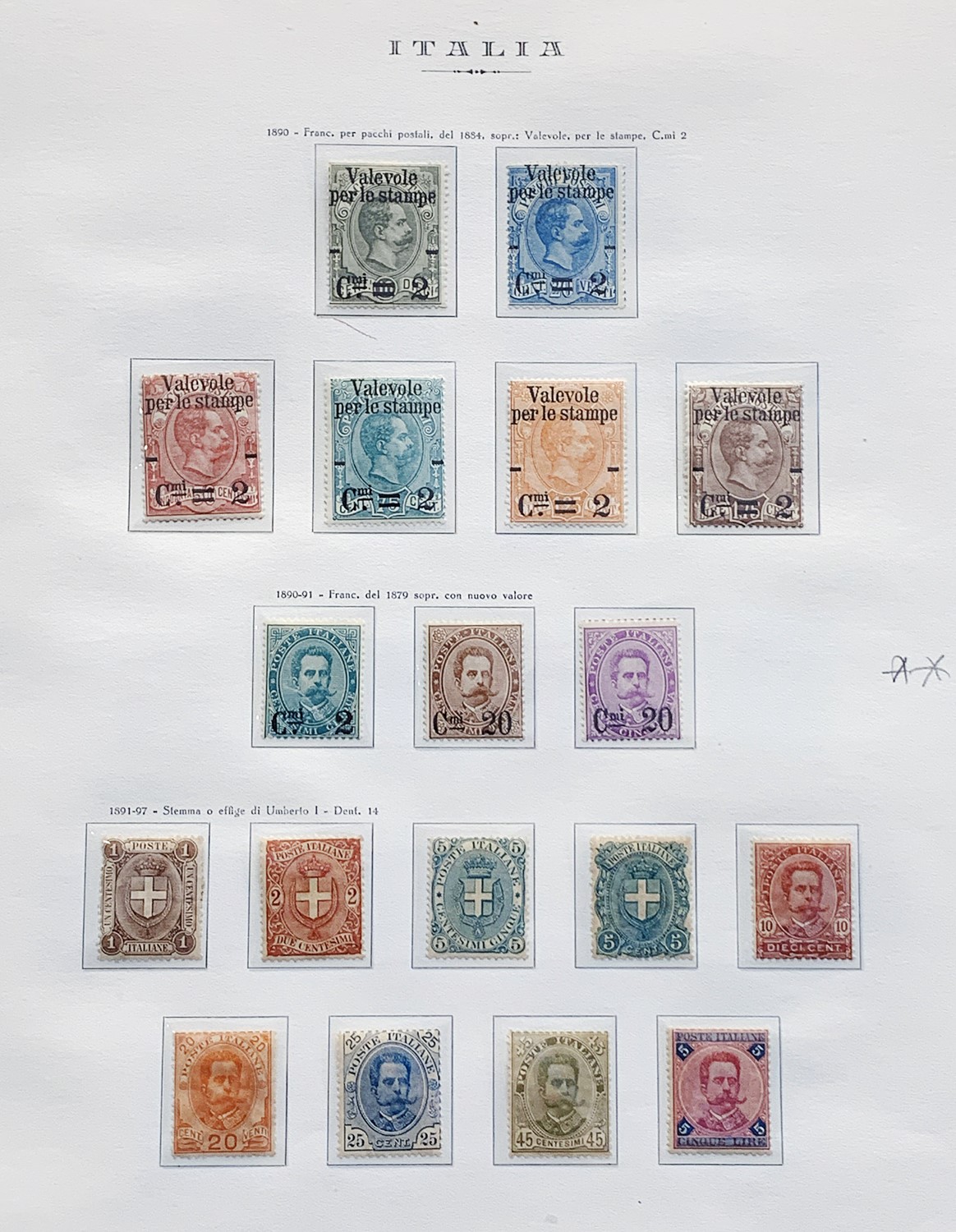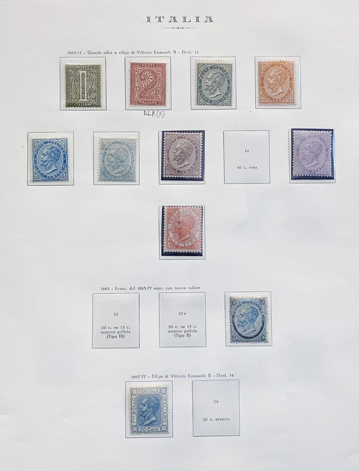 1863/1979 - ITALIA REGNO e REPUBBLICA: collezione praticamente completa di francobolli nuovi, principalmente TL ma con diversi SL, della Repubblica Italiana dagli inizi al 1979, con PO (compreso Gronchi Rosa), PA ed Espressi, montati su fogli Zeus raccolti in due volumi. Nel lotto compreso anche un album Landmans contenente una collezione di francobolli usati parziale per il periodo di Regno e praticamente completa per il periodo di Repubblica. Occasione