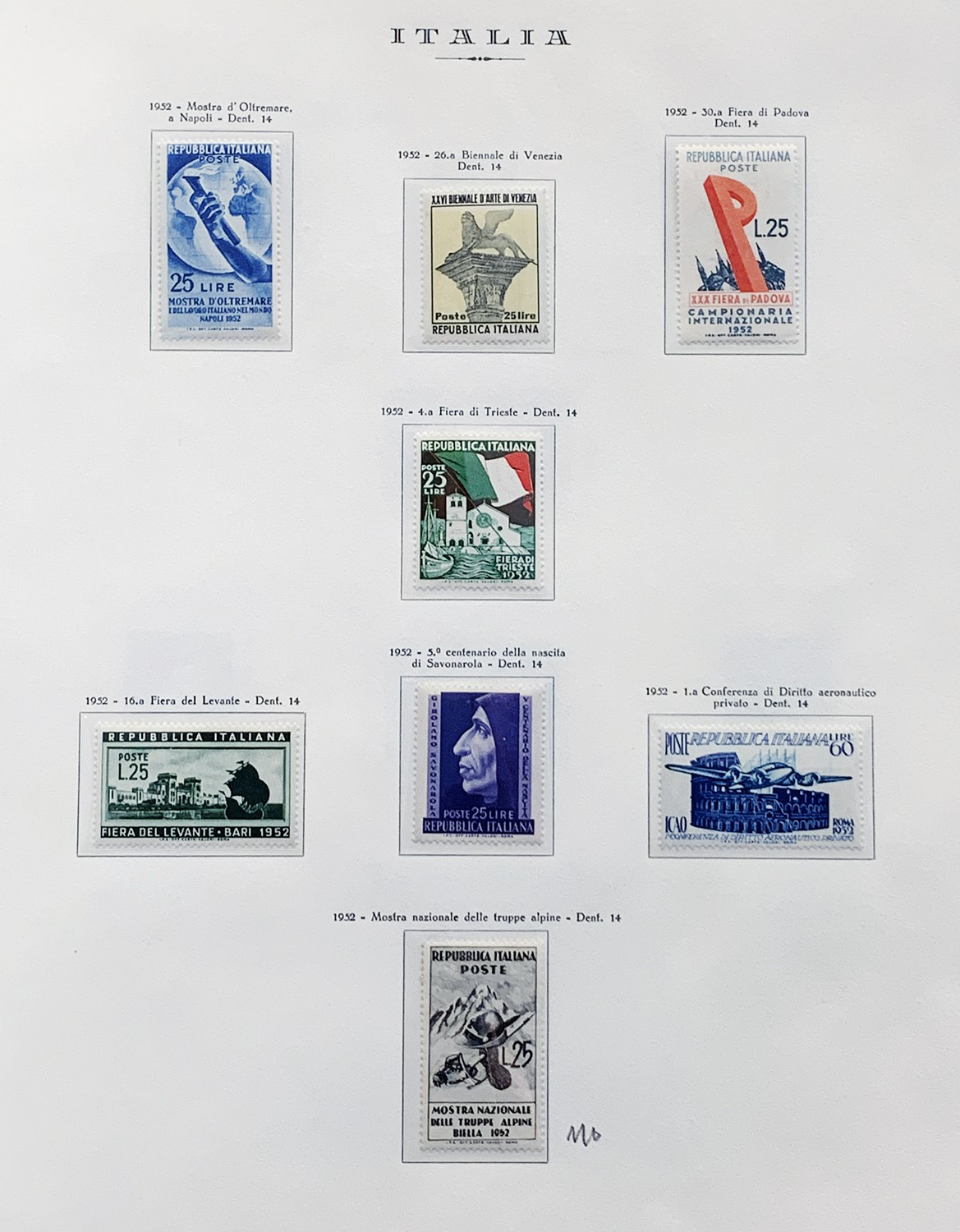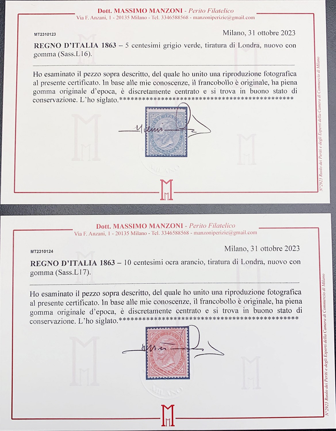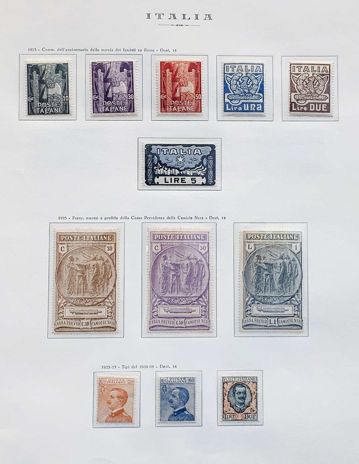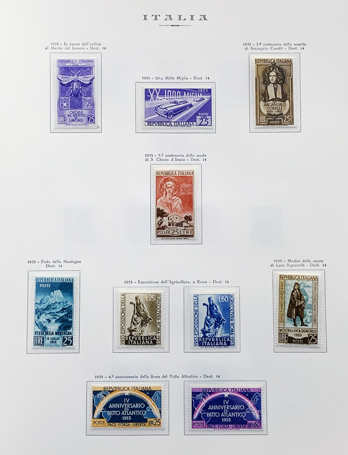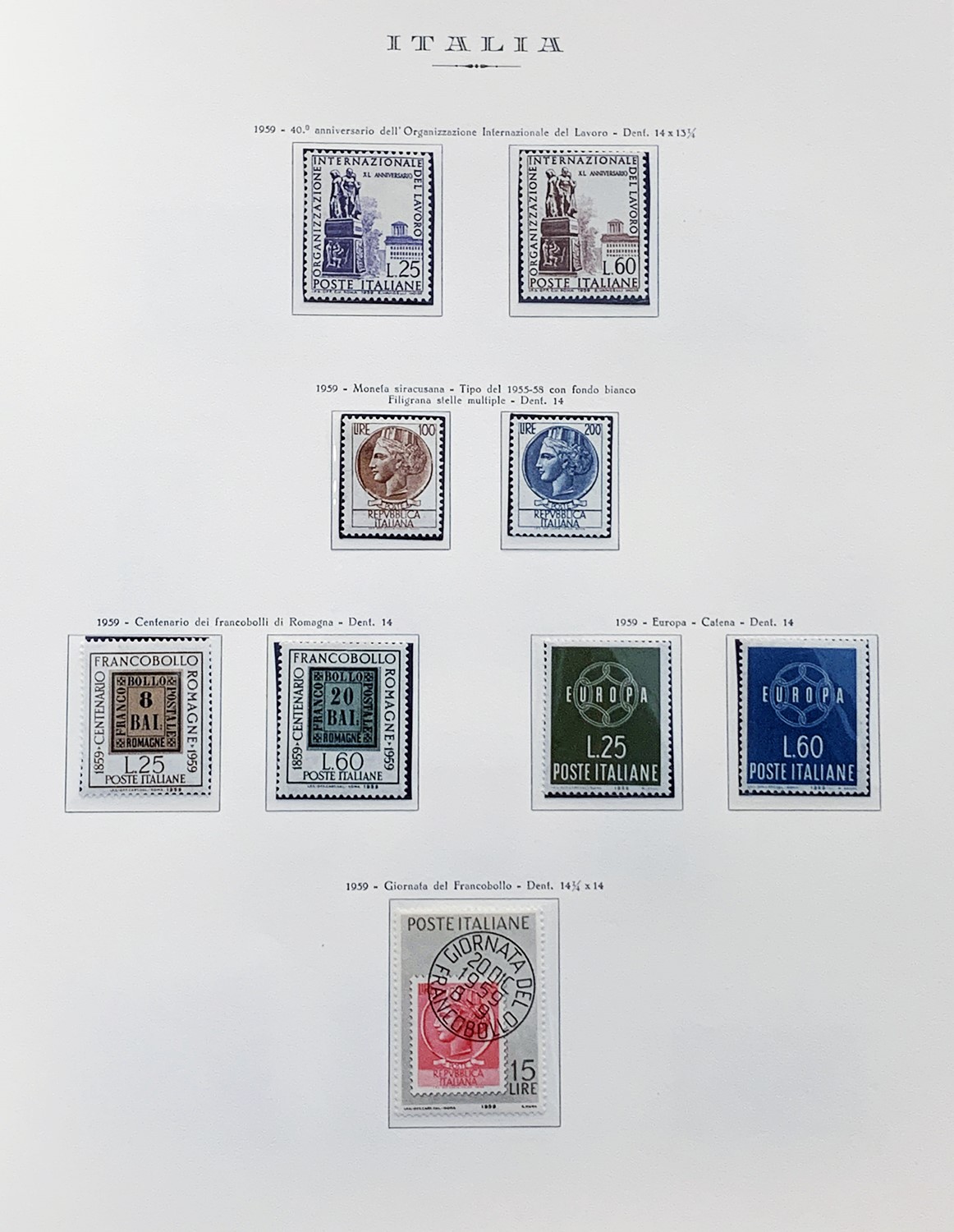 1863/1979 - ITALIA REGNO e REPUBBLICA: collezione praticamente completa di francobolli nuovi, principalmente TL ma con diversi SL, della Repubblica Italiana dagli inizi al 1979, con PO (compreso Gronchi Rosa), PA ed Espressi, montati su fogli Zeus raccolti in due volumi. Nel lotto compreso anche un album Landmans contenente una collezione di francobolli usati parziale per il periodo di Regno e praticamente completa per il periodo di Repubblica. Occasione