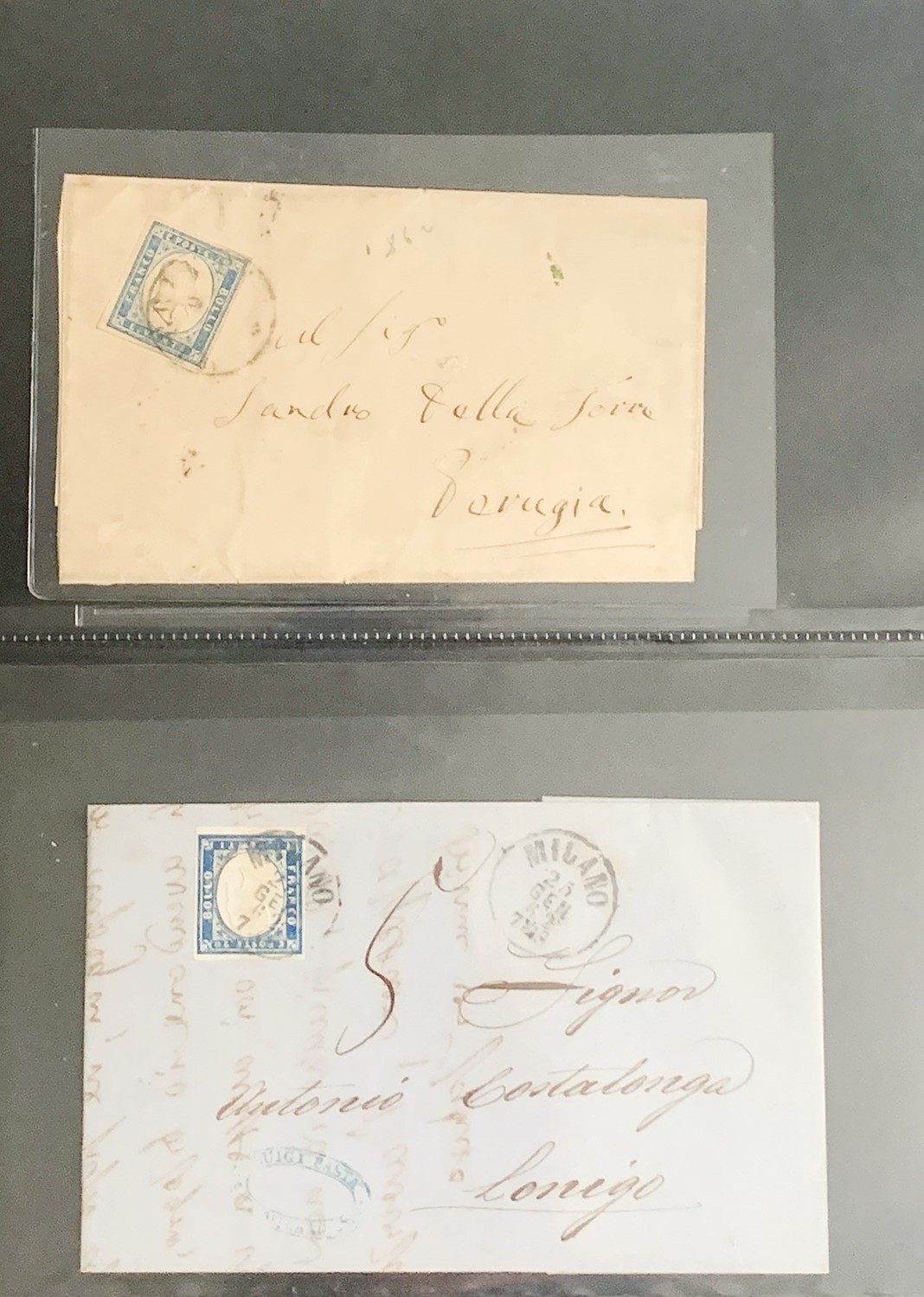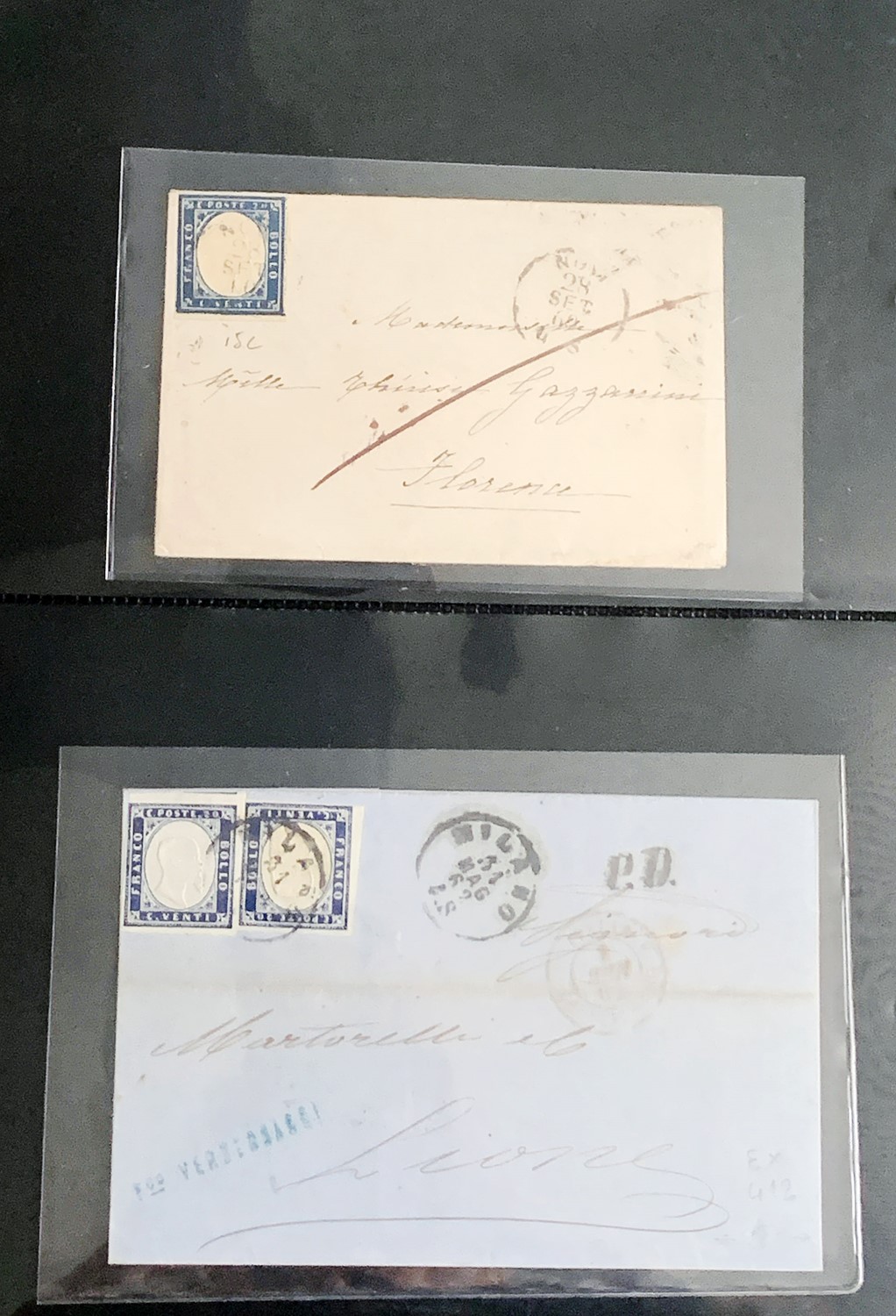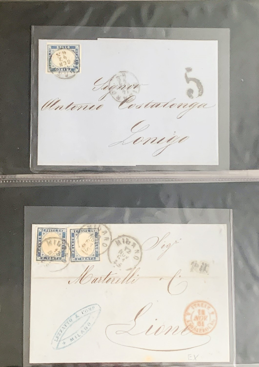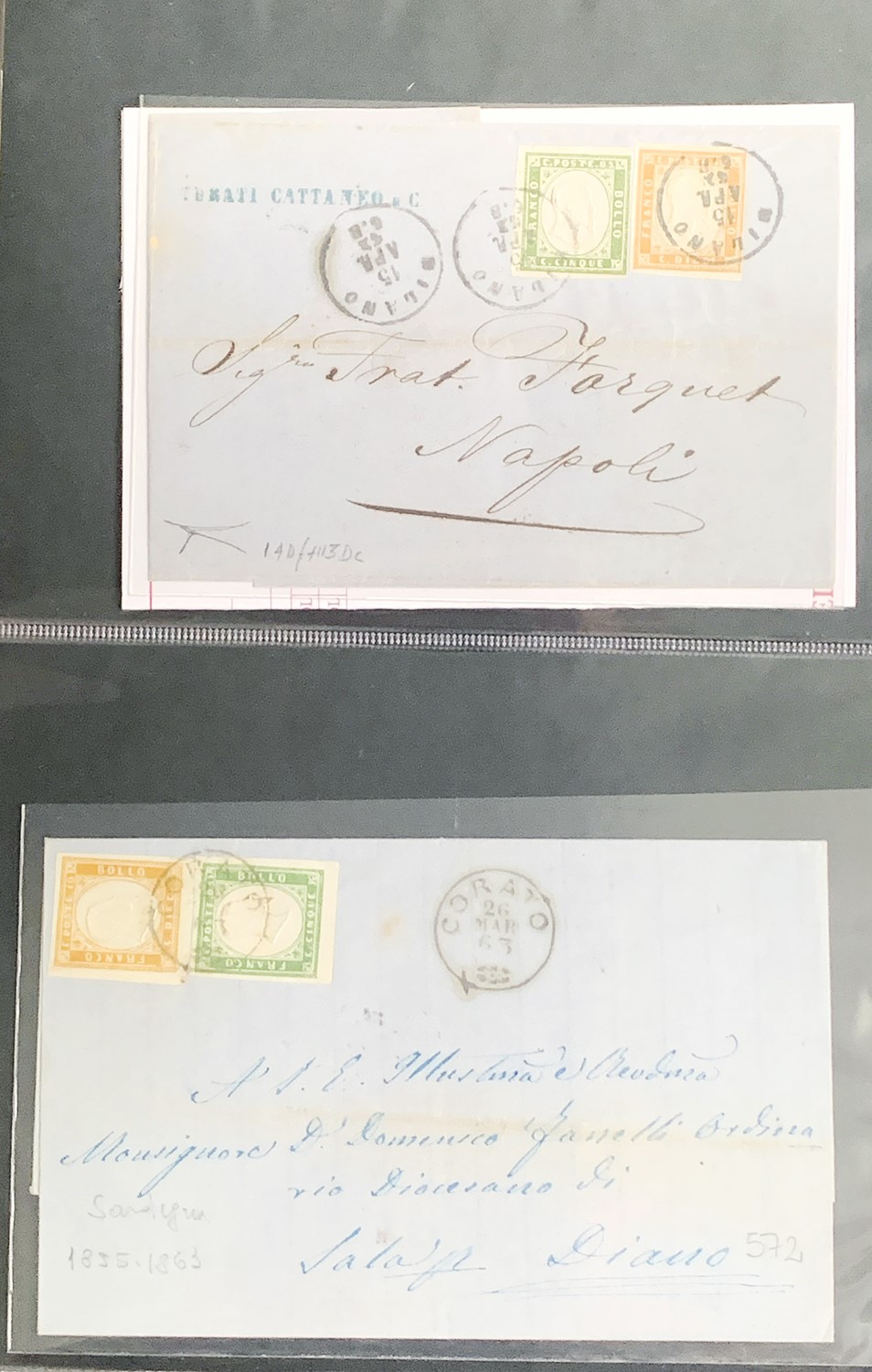 1856/63 - SARDEGNA / ANTICHI STATI ITALIANI: insieme di 43 lettere di Antichi Stati / Regno d'Italia, in prevalenza con affrancatura della IV emissione di Sardegna. Diverse interessanti e rare presenze. Insieme di qualità mista, in genere molto buona, raccolto in un classificatore