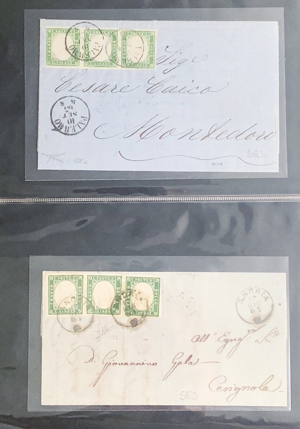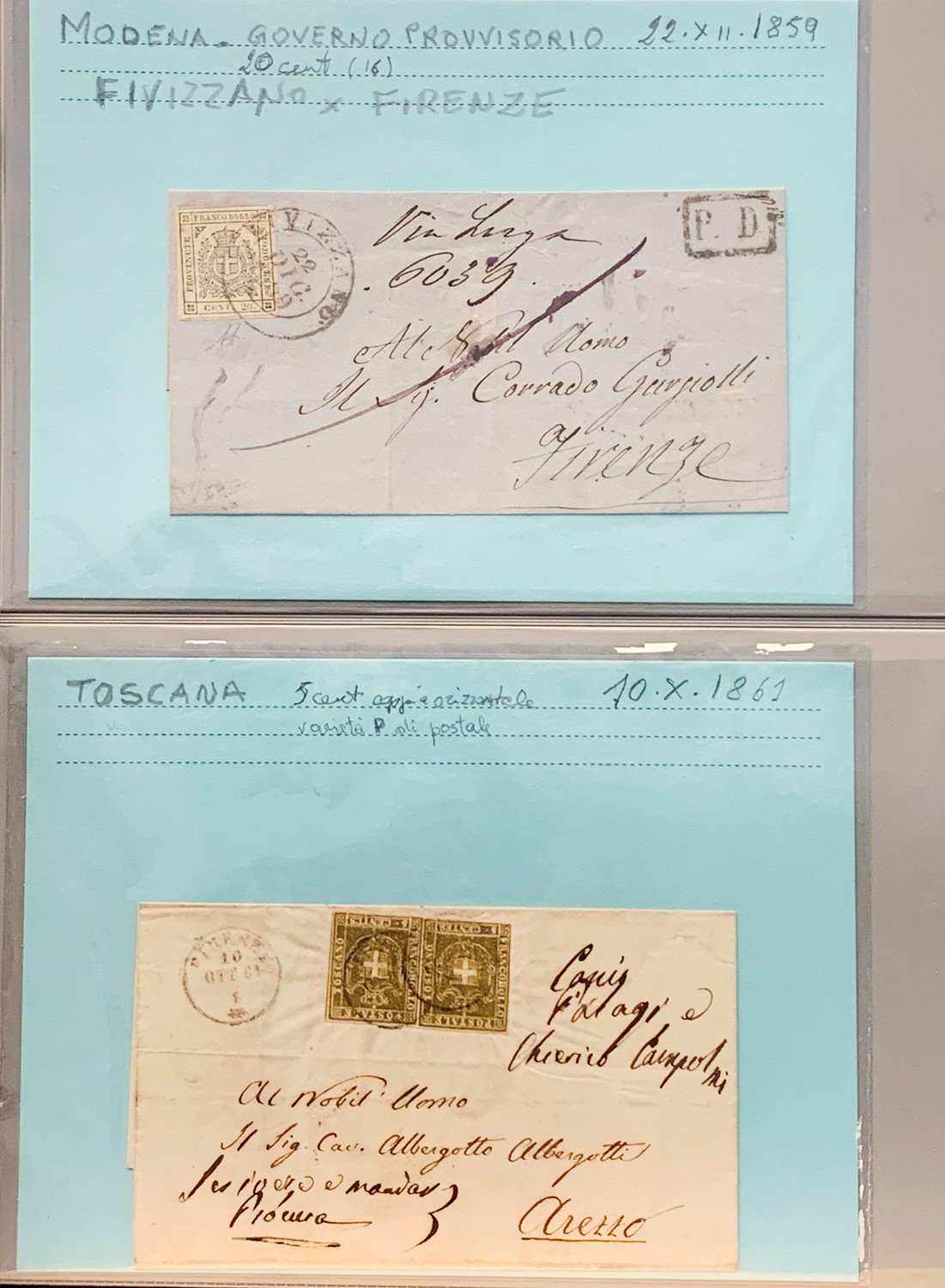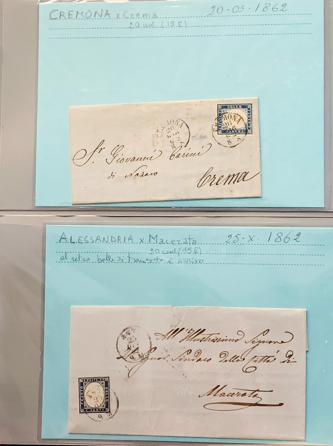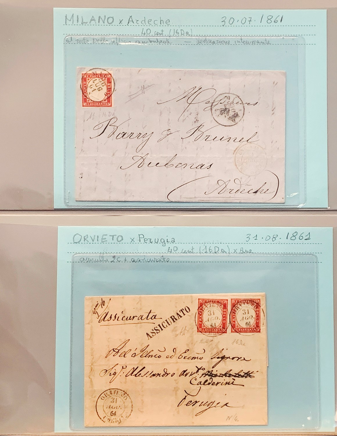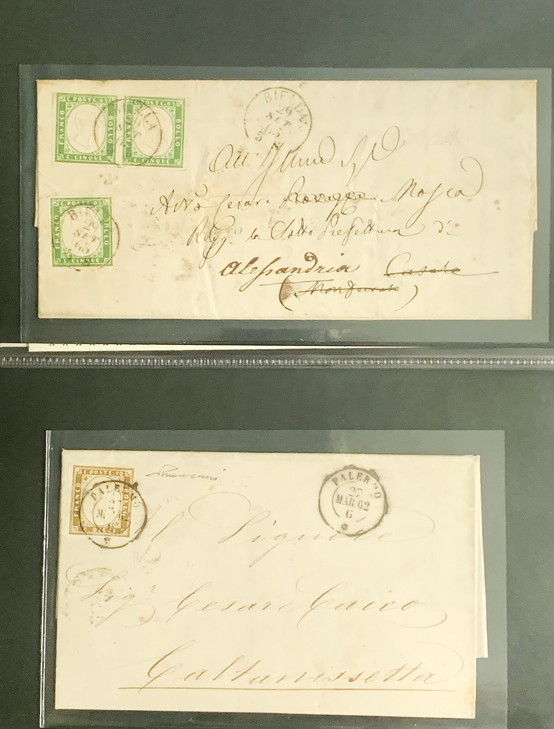 1856/63 - SARDEGNA / ANTICHI STATI ITALIANI: insieme di 43 lettere di Antichi Stati / Regno d'Italia, in prevalenza con affrancatura della IV emissione di Sardegna. Diverse interessanti e rare presenze. Insieme di qualità mista, in genere molto buona, raccolto in un classificatore
