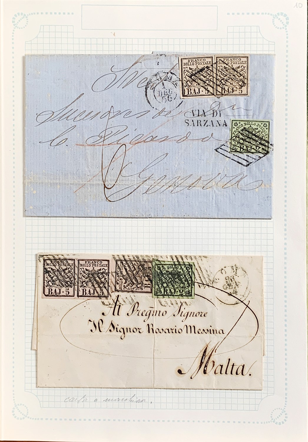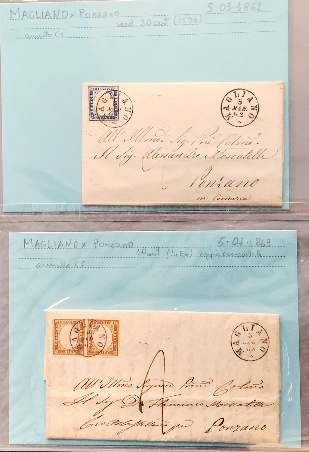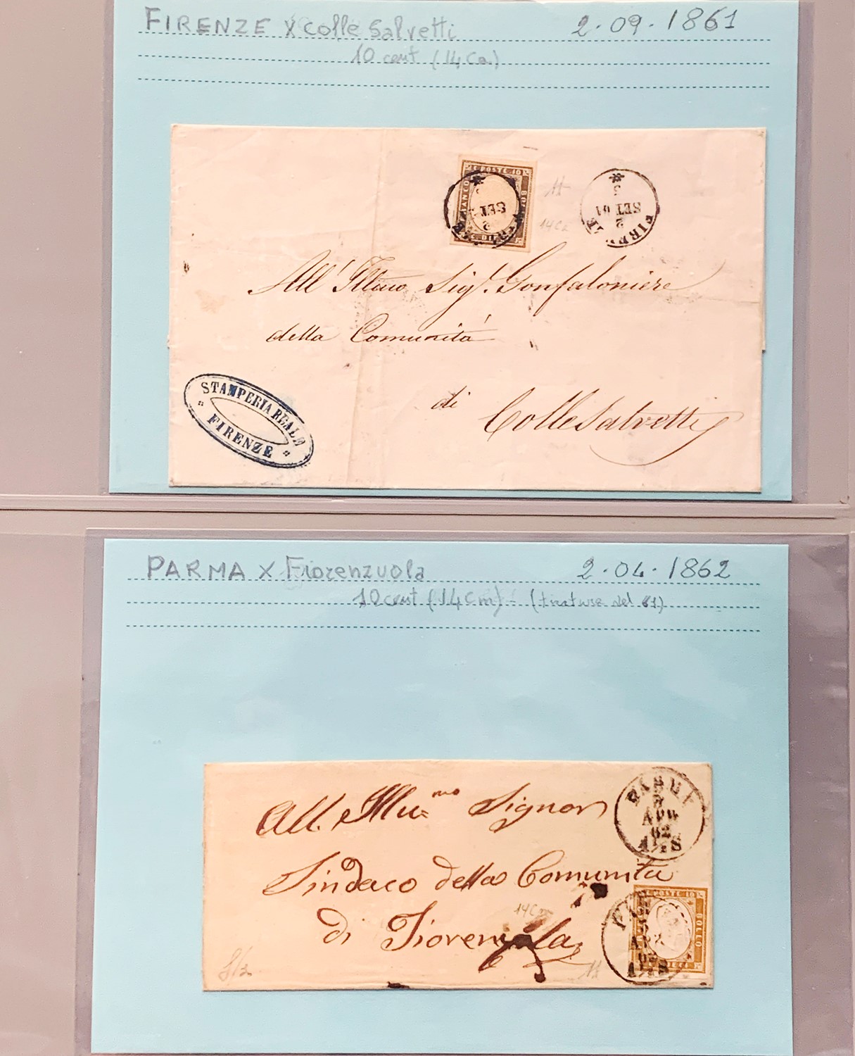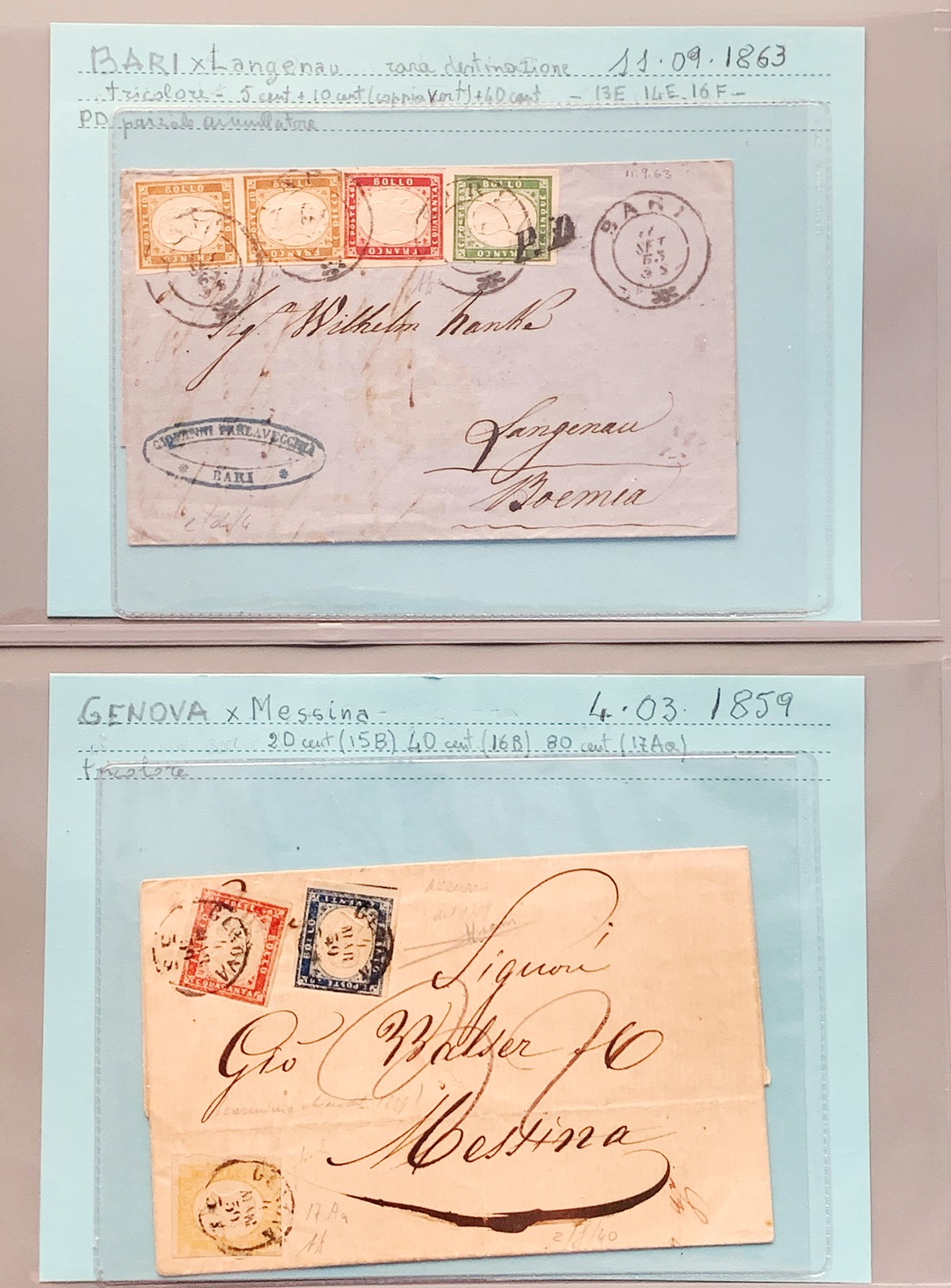 1856/63 - SARDEGNA / ANTICHI STATI ITALIANI: insieme di 43 lettere di Antichi Stati / Regno d'Italia, in prevalenza con affrancatura della IV emissione di Sardegna. Diverse interessanti e rare presenze. Insieme di qualità mista, in genere molto buona, raccolto in un classificatore