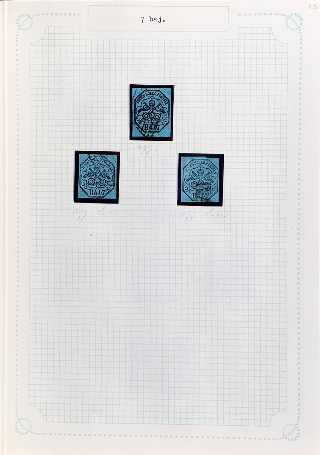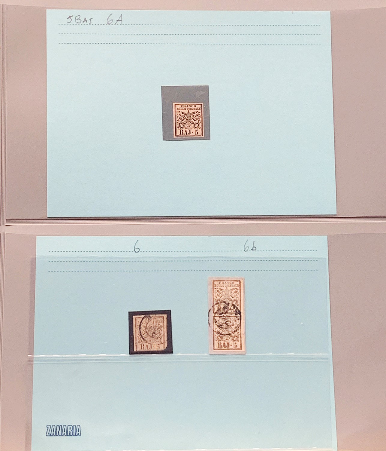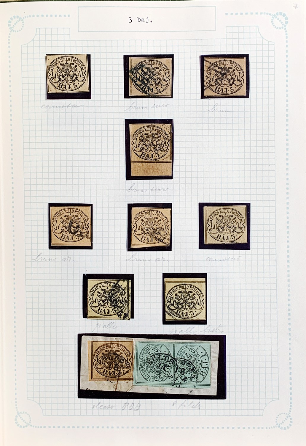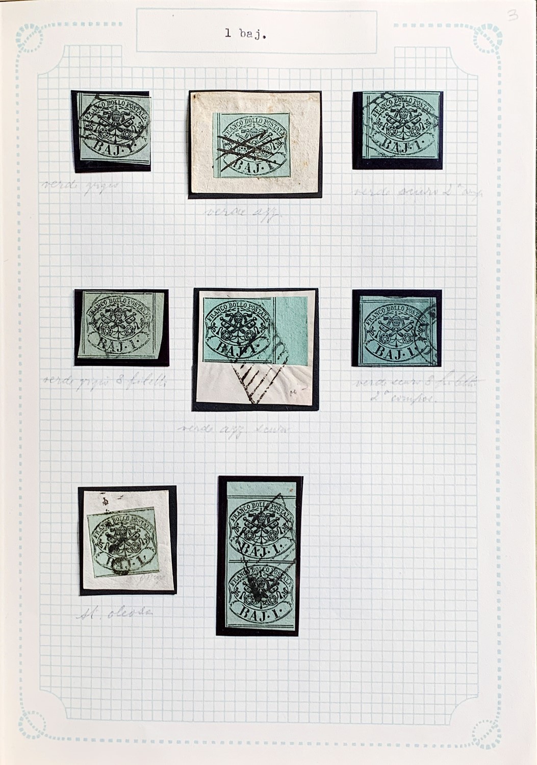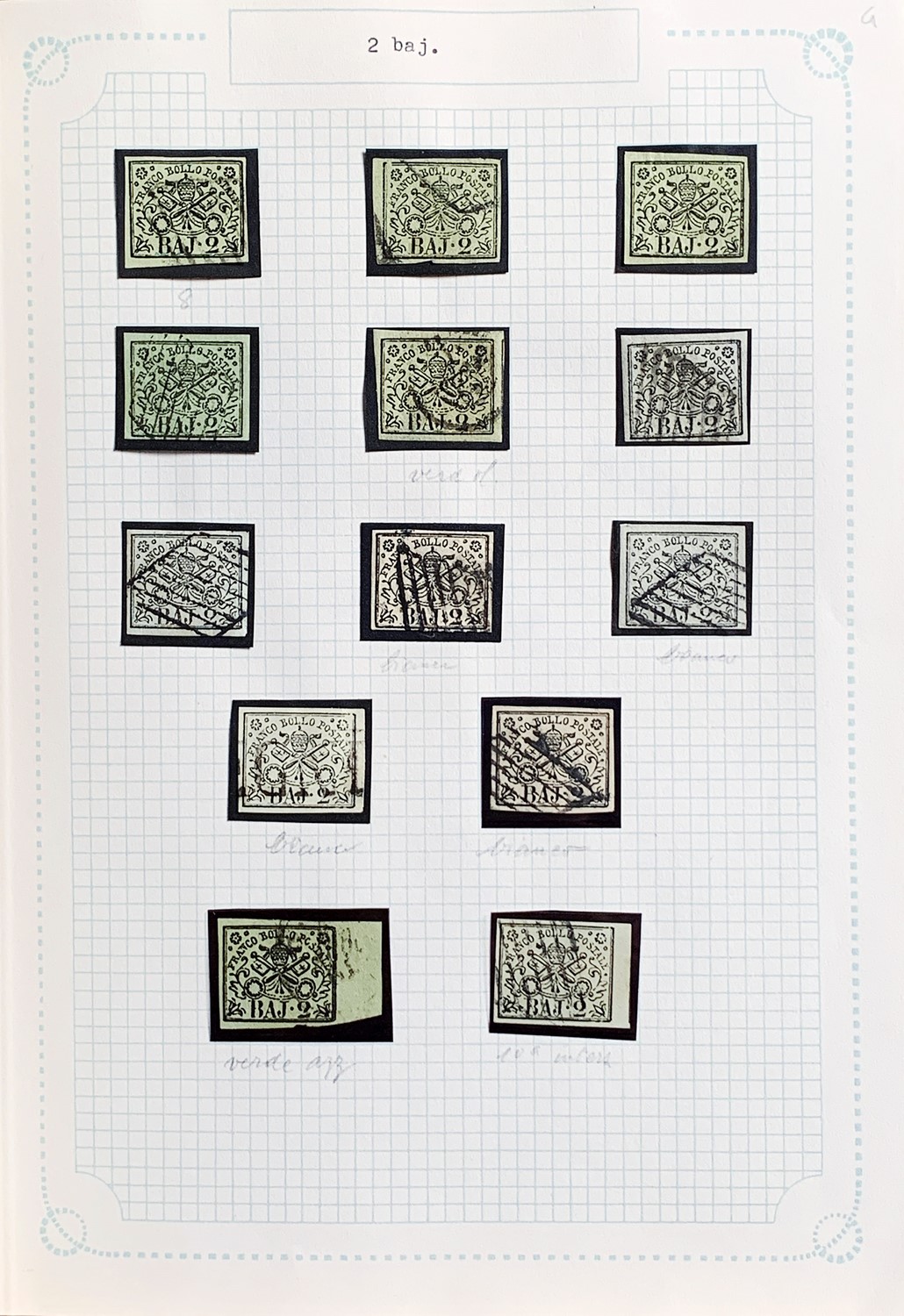 1852 - PONTIFICIO: piccola collezione della I emissione, composta da francobolli nuovi, usati e su frammento. Sono presenti diversi pezzi di sicuro interesse tra cui una fascetta affrancata con 1/2baj e 1 scudo nuovo con gomma, perfetto. Insieme molto interessante e di ottima qualità generale. 4CF (Come per tutti i lotti e collezioni in asta, si invitano i clienti interessati a esaminare attentamente il lotto in modo da poter effettuare le proprie valutazioni personali prima di fare offerte. Ricordiamo che non vengono accettati reclami per i lotti composti da cinque elementi o piu')