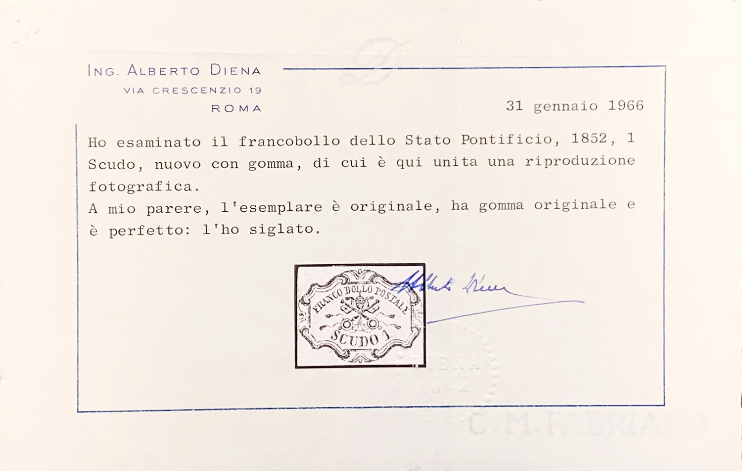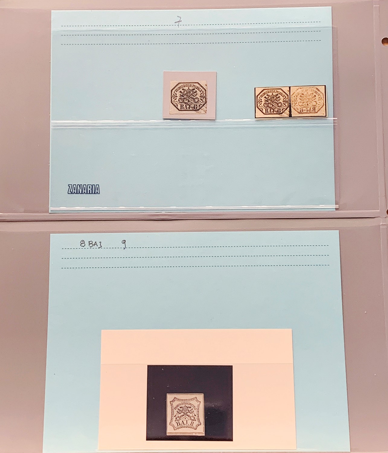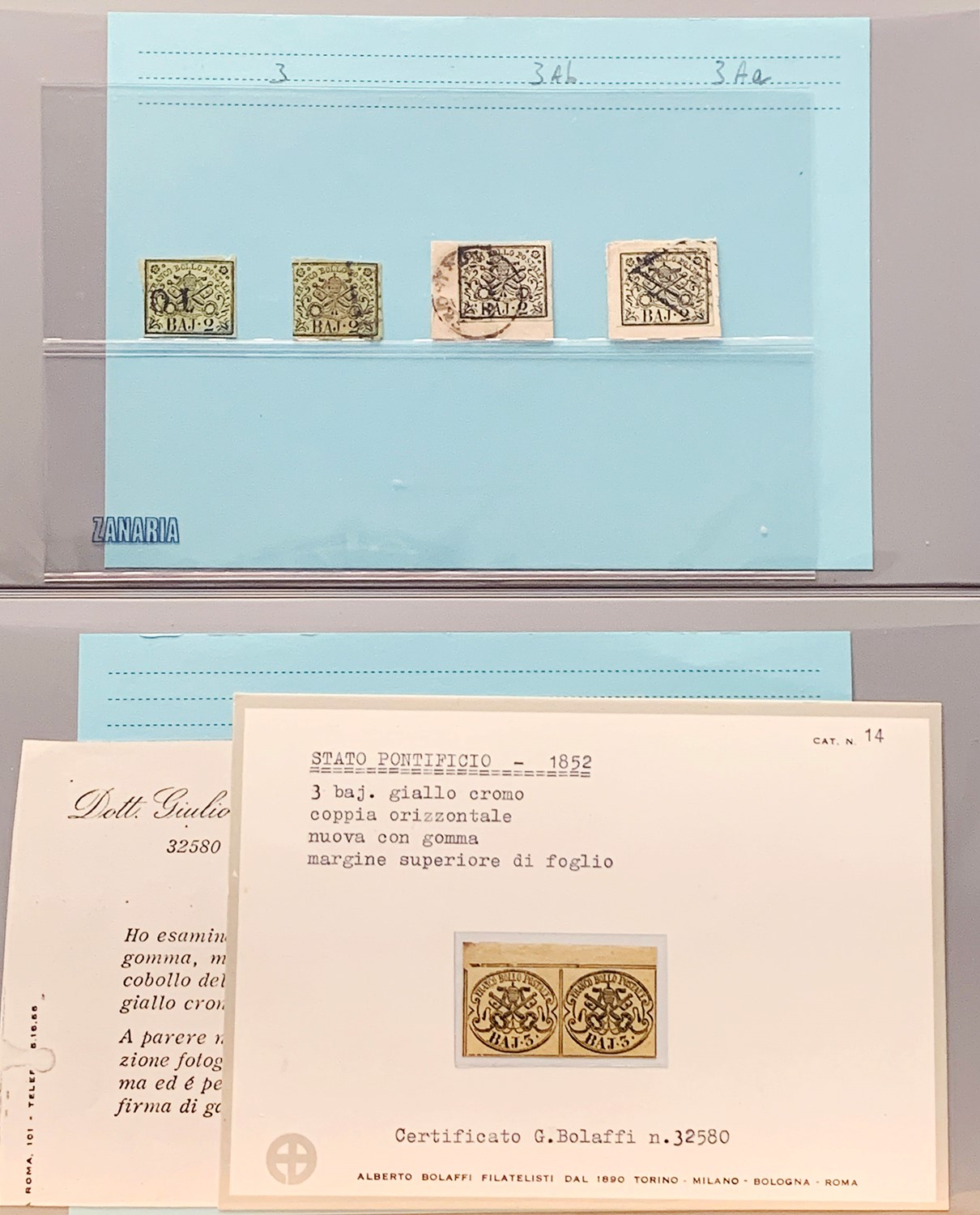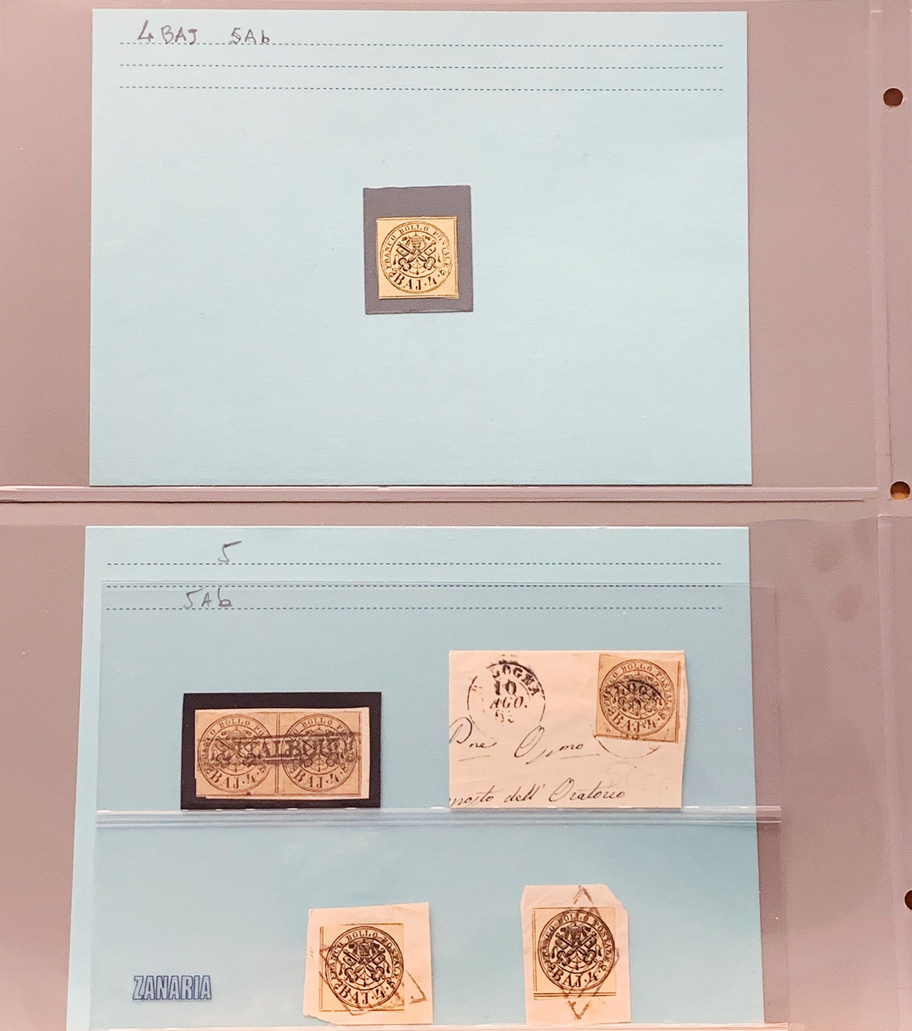 1852 - PONTIFICIO: piccola collezione della I emissione, composta da francobolli nuovi, usati e su frammento. Sono presenti diversi pezzi di sicuro interesse tra cui una fascetta affrancata con 1/2baj e 1 scudo nuovo con gomma, perfetto. Insieme molto interessante e di ottima qualità generale. 4CF (Come per tutti i lotti e collezioni in asta, si invitano i clienti interessati a esaminare attentamente il lotto in modo da poter effettuare le proprie valutazioni personali prima di fare offerte. Ricordiamo che non vengono accettati reclami per i lotti composti da cinque elementi o piu')