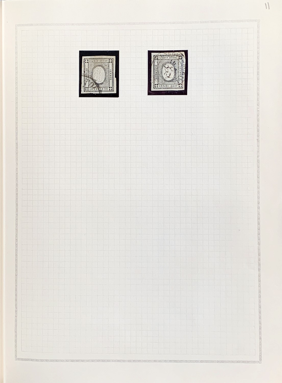 1859 - la serie completa di nove valori in BL4 SL, montata su fogli Bolaffi raccolti in una cartella di pelle Zanaria. Insieme raro e di ottima qualità. Quattro CF Giulio Bolaffi e un CF Manzoni (Sassone 1/9 - Euro 40.000)