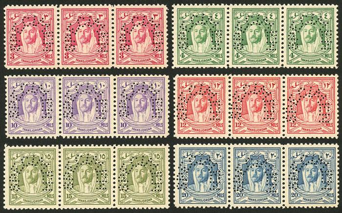 image Yvert 192A/196, 1947 set of 6 values in strips of 3 perforated SPECIMEN, MNH, excellent quality! (Image)