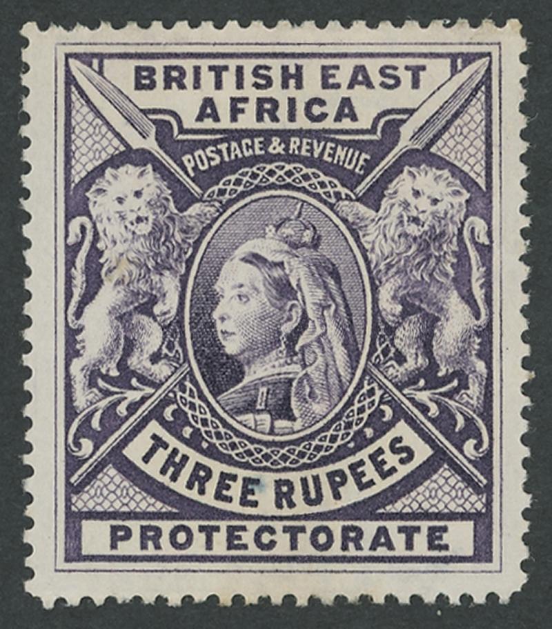 BRITISH EAST AFRICA: 1897-1903 QV High Values 3r deep violet SG 94, well-centred especially for this issue, tiny hinge remainder, Cat £225. (Image1)