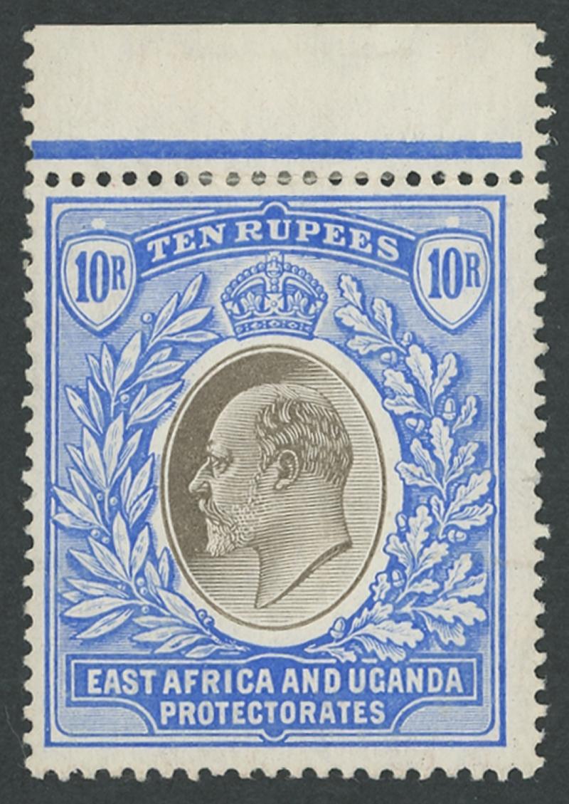 EAST AFRICA & UGANDA: 1904-07 KEVII Keyplates Multiple Crown CA Watermark 10r grey & deep ultramarine SG 31 marginal example from the top of the sheet with 'Jubilee' line in the margin, lightly mounted, Cat £425. (Image1)