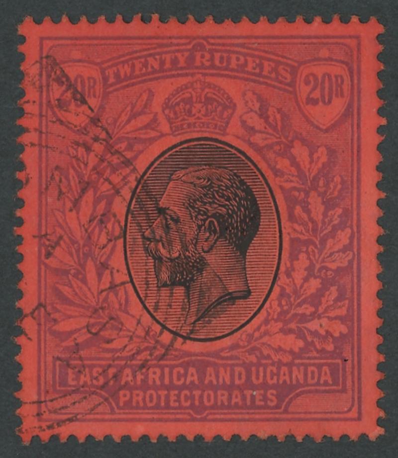 EAST AFRICA & UGANDA: 1912-21 KGV Keyplates Multiple Crown CA Watermark 20r black & bright purple/red SG 59 shade variant, very well-centred, light partial Mombasa Squared Circle cancel, Cat £600. (Image1)