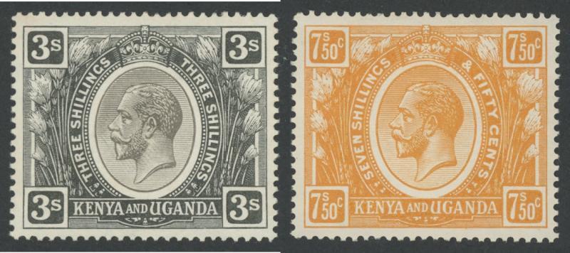 KENYA & UGANDA: 1922-27 KGV Keyplates Multiple Script CA Watermark 1c to £1 set SG 76-95 with extra shades of the 1c, 5c, 12c, 20c & 3/- jet black, centring well above-average, many are lightly mounted including the 7/50c (gum bend) & 10/-, others with small hinge remainders, Cat £590.