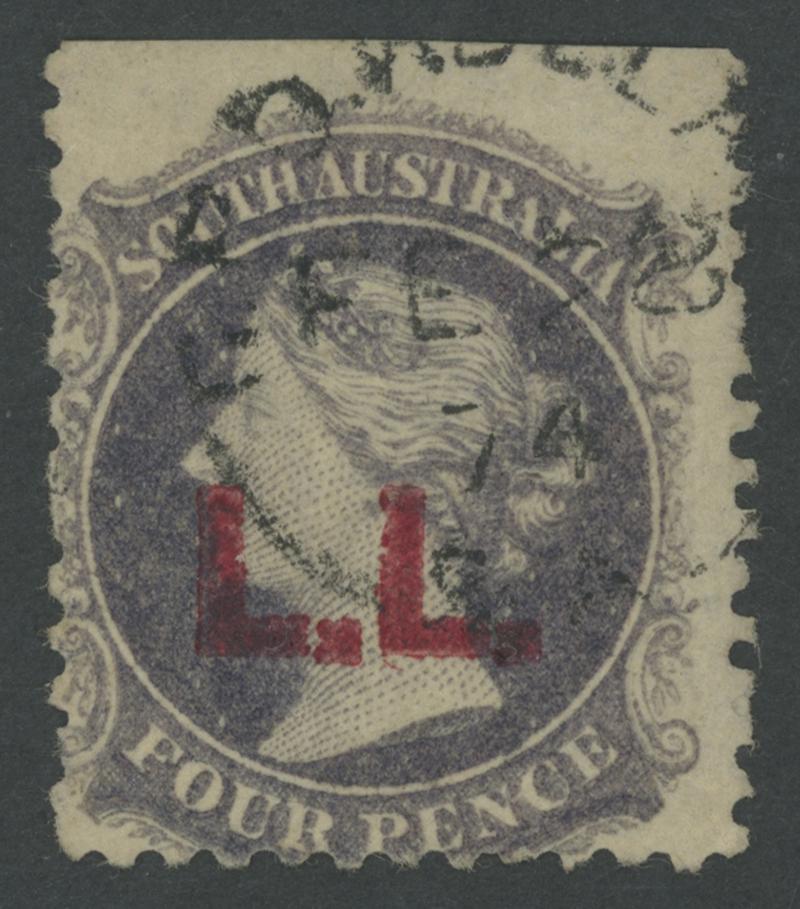 This stamp is something of an enigma. Compared to other 'L.L.' stamps, the overprint is ½mm shorter & ½mm longer. And the usage is very late. Chris Ceremuga Certificate assessed it as being a forgery. However, the cds appears to be across the overprint, it was found in a multi-generational collection, and it is the only recorded example, which begs the question "Why go to all the trouble of creating a one-off stamp, with an unrecorded variety?" (Image1)