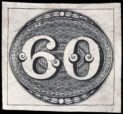 Brazil, 1843, First Issue ("Bull's Eye"), 60r black (Scott 2), o.g., hinged, Very Fine. Scott $825. Estimate $250 - 350. Scott $825 Suggested Bid $250-350 (Image)