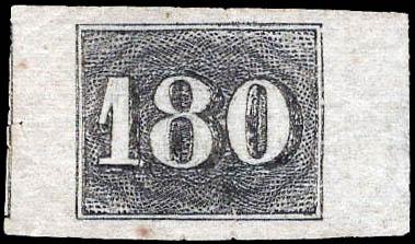 Brazil, 1850, Numeral Issue, imperf., 180r black (Scott 26), jumbo margins, unused without gum, Extremely Fine. Scott $115. Estimate $50 - 75. Scott $115 Suggested Bid $50-75 (Image)