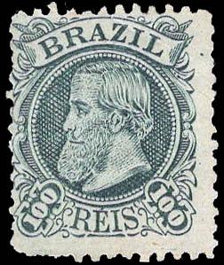 Brazil, 1882, Emperor Pedro, 100r dark green, type II (Scott 83b), unused without gum, Fine, ex-Gilbert, with 1988 P.F. certificate. Scott $425. Estimate $100 - 150. Scott $425 Suggested Bid $100-150 (Image)