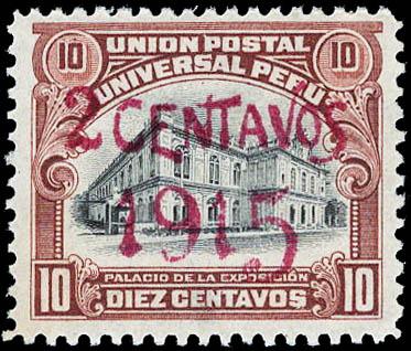 Peru, 1915, Lima City Hall, 2c on 10c red brown & black (Scott 193C), o.g., lightly hinged, Very Fine. Scott $175. Estimate $50 - 75. Scott $175 Suggested Bid $50-75 (Image)