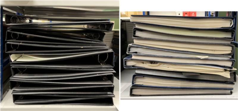 Lot de 10 classeurs pour feuilles entières et 13 reliures pour feuilles, TB (Image)
