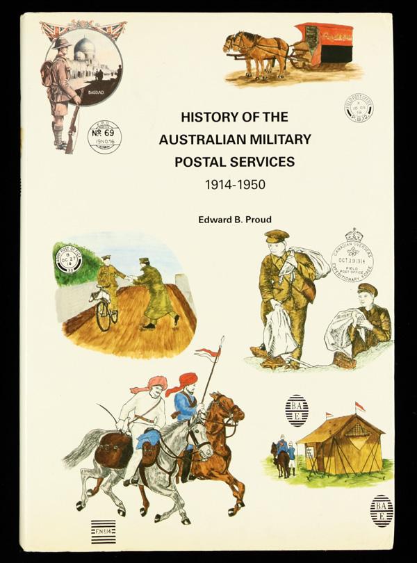 Proud, Edward B.,History of the Australian Military Postal Services 1914-1950, 579 pp., hardcover with dust jacket, 1991; masterwork listing all known postmarks, fully illustrated and priced, nicely complemented by historical background and illustrations, will prove indispensable, VF. Shipping charges apply - weight 2.8 lbs. (Image)
