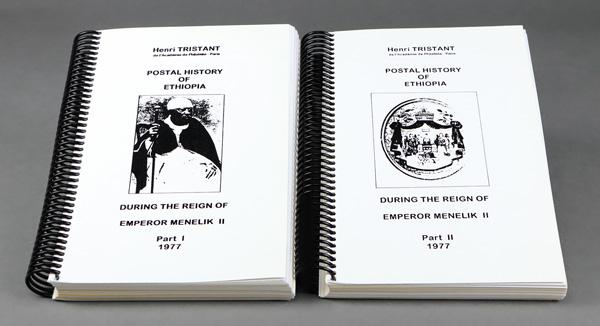 Tristant, Henri,Postal History of Ethiopia During the Reign of Emperor Menelik II, two-volume spiral-bound set, 512 pp. in total; clean and sound. Shipping charges apply - weight 2.1 lbs. (Image)