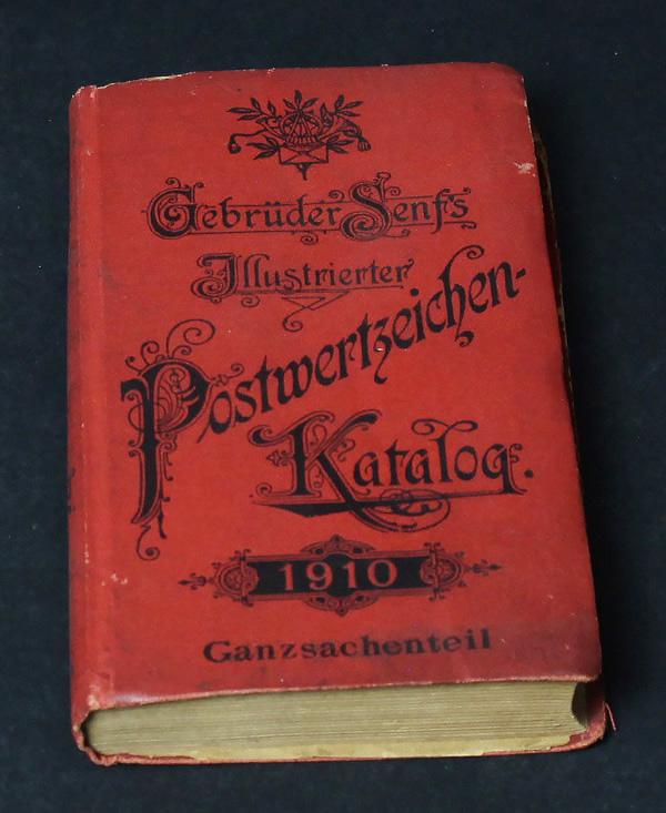 Senf,Illustrierter Postwertzeichen-Katalog. 1910. Ganzsachenteil, 552 pages, cloth-covered paperboard; card of covers broken but cloth intact; pages aged, but a nice classic catalogue. (Image)