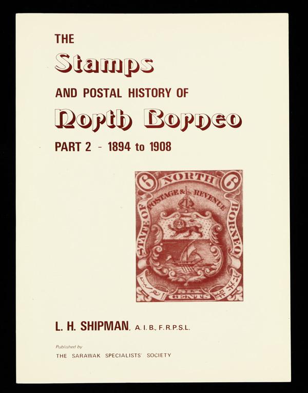 Shipman, L.H.,The Stamps and Postal History of North Borneo, Part 2: 1894 to 1908, 374 pp., paperback; published by The Sarawak Specialists' Society; covers all aspects with many lists as well as chapters on Postal Stationery, Revenues, cancellations, rates, etc., as well as Labuan issues of 1894-1905; out of print, Very Fine. Shipping charges apply - weight 1.6 lbs. (Image)