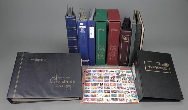 Cover binders and sheet files, White Ace cover album (new still in box), pair of Fleetwood album binders in slipcases, mint sheets files, and a few others; about a dozen in total. Shipping charges apply - weight 28 lbs. (Image)