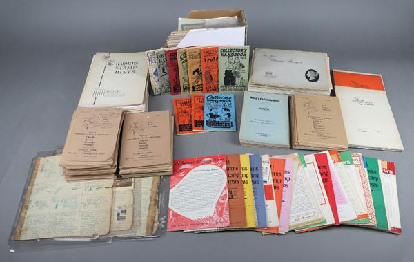 Varied,Philatelic library staples from a bygone era, Pat Paragraphs penned by Elliott Perry 1931-1958 (about 60 issues); The Stamp Collector's Companion 1938 vol 1 No 1-6 (2 sets); 22 issues of Godden's Gazette 1936-1939 printed in London; H R Harmer publications (Harmer Stamp Hints, Annual Resume, H R Harmer Organization) from the 1940s-1950s; Al Burns Stamp News published in the 1940s (about 35 issues); Philatelic Horse Sense produced by Eustace Power in the 1940s? (about 20 issues); Collector's Handbook produced in the 1940s (about 40 issues); and more, Fine. Shipping charges apply - weight 23 lbs. (Image)