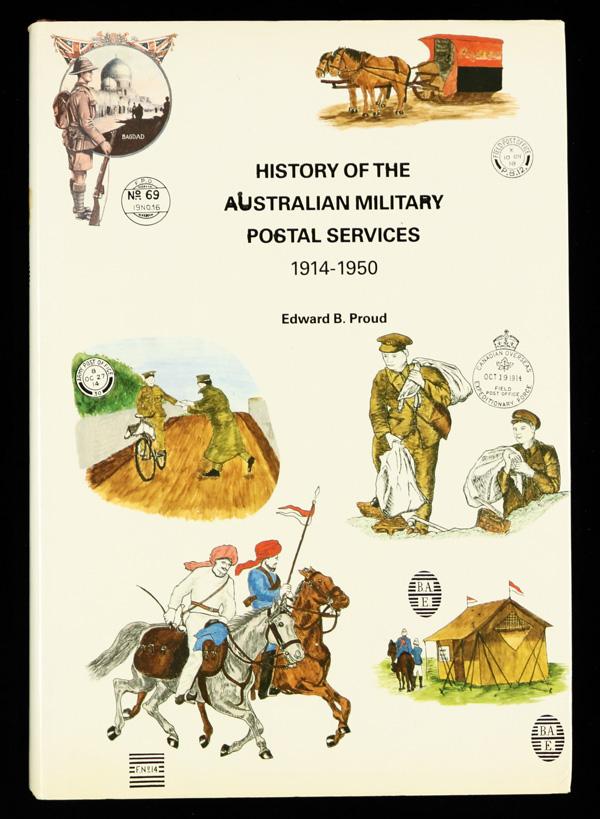 Proud, Edward B.,History of the Australian Military Postal Services 1914-1950, 579 pp., hardcover with dust jacket, 1991; masterwork listing all known postmarks, fully illustrated and priced, nicely complemented by historical background and illustrations, will prove indispensable, VF. Shipping charges apply - weight 2.8 lbs. (Image)