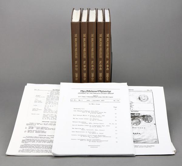 Malaya Study Group,The Malayan Philatelist, 5 bound volumes covering the years 1994-2004 with some loose before and after; a must for those fascinated with this area. Shipping charges apply - weight 13 lbs. (Image)