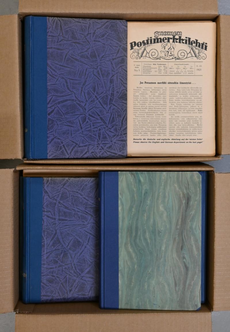 Suomen Postimerkkilehti 1922 - 1980 bound in annual volumes, total of 40 books. Also loose issues from 1921 etc. (Image)