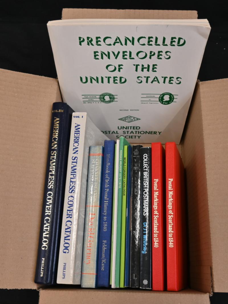 Foreign literature fine selection of over 10 pieces, eg. American Stampless cover catalog Vol I and III, Handbook of Irish Postal History to 1840, The Penny Post 1680 - 1918 etc. (Image)