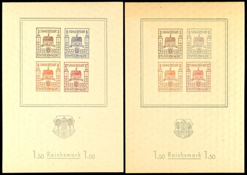 40+50 Pf. in abweichender Farbe dunkelbraunlila und helllilakarmin, früher als Probedrucke PI und PII gelistete, je tadellos postfrisch, gepr. Zierer BPP
