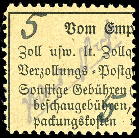 5 Reichmark Hitler with black overprint in type I, A-perforation, used, very fine, expertized Sturm (23IA) (Image 1)(Image)