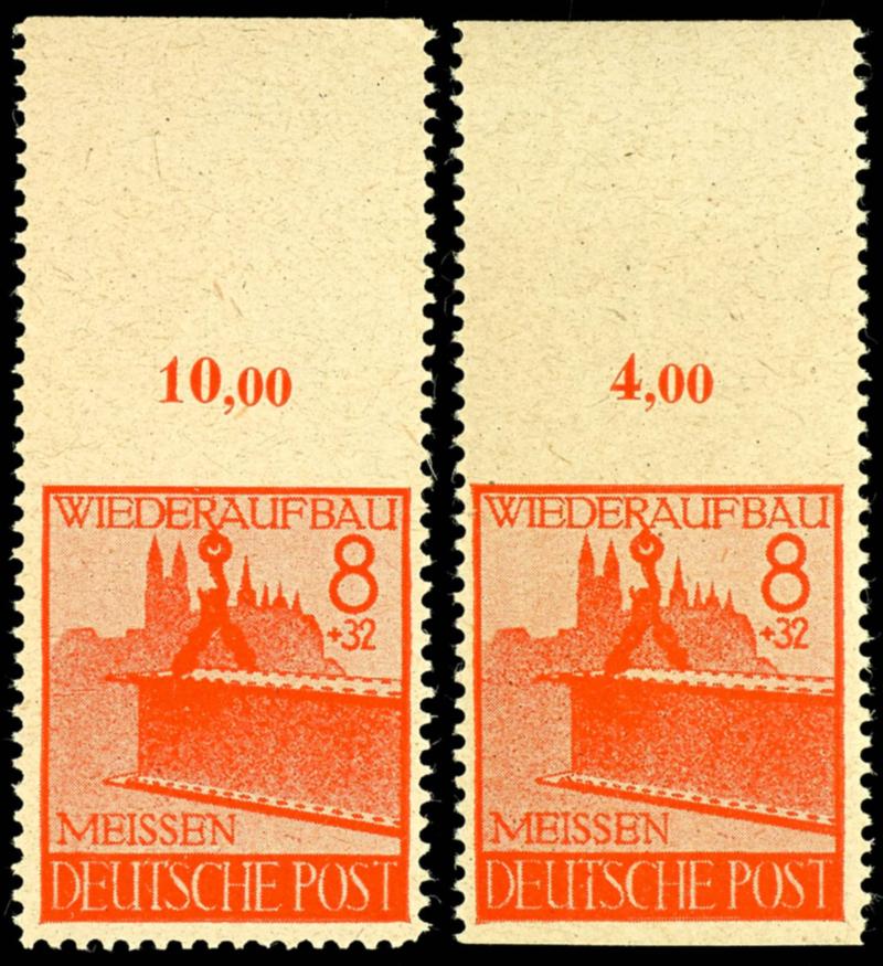 8 plus 32 Pf. Yellowish red, above imperforated and horizontal imperforated, each from upper margin and perfectly mint never hinged, Michel 500.- (37AUo,Uw) (Image 1)(Image)