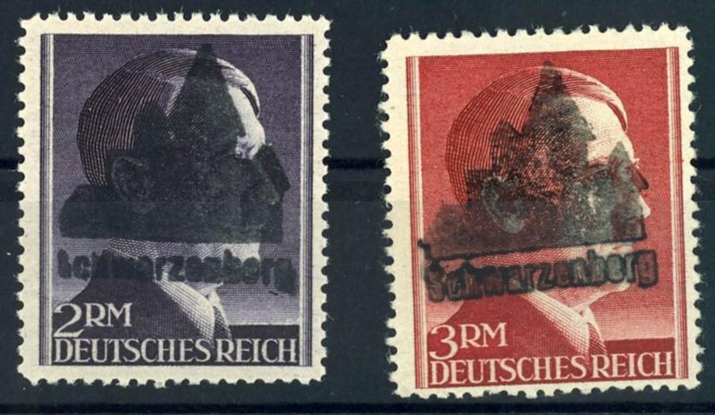 2 Reichsmark und 3 Reichsmark mit Aufdruck in Type II, A-Zähnung, zwei Werte, postfrisch, tadellose Erhaltung, geprüft Sturm bzw. Zierer BPP.