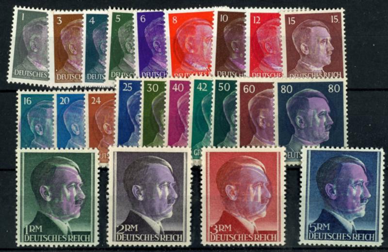 1 Pfennig bis 1 Reichsmark Hitler mit lokalem Aufdruck, 17 Werte inkl. 6 Pfennig in der seltenen Farbe blauviolett, postfrisch, geprüft Zierer.