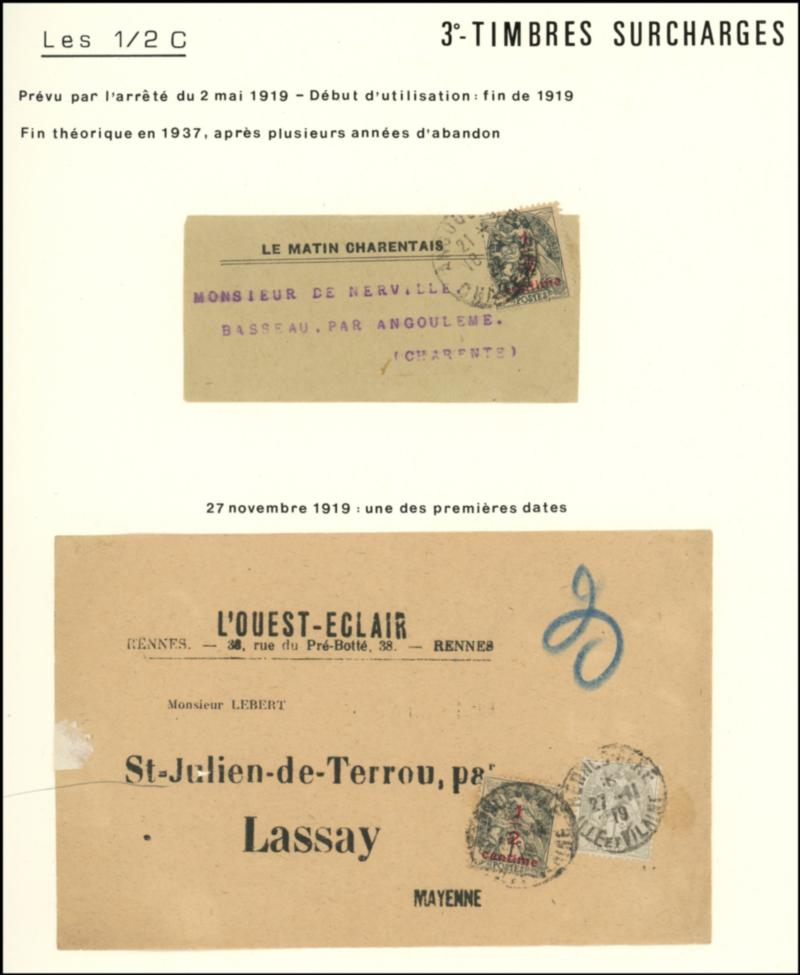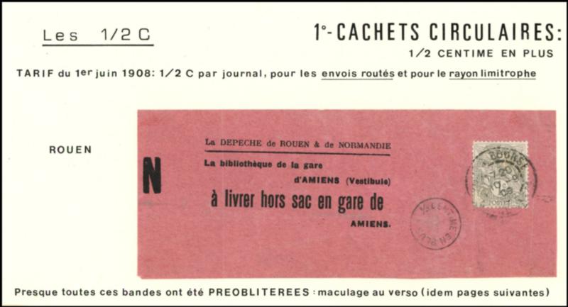 7 fragts affr. Blanc (1 Entier) avec cachets 1/2 centime en plus, types différents, TB (Image)