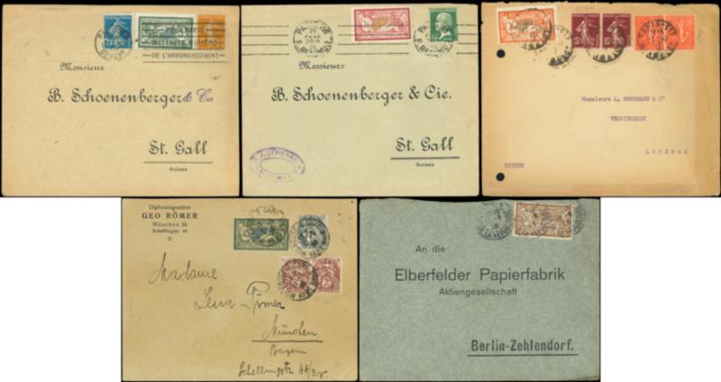 4 documents et un fragt, affr. à base de N°157, 1919-22, TB (Image)