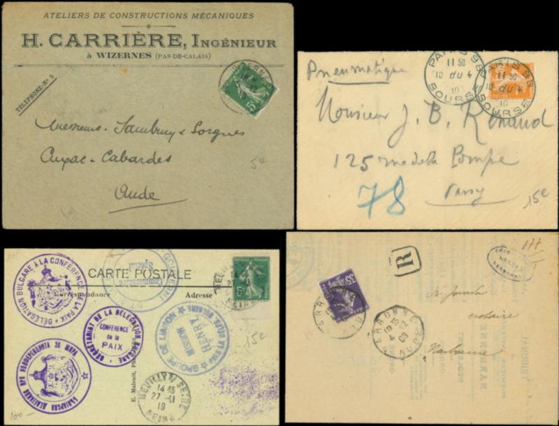 Semeuse, classeur de + de 60 Lettres ou doc., affranchissements et oblitérations divers, TB (Image)