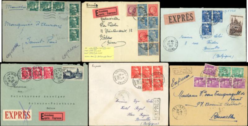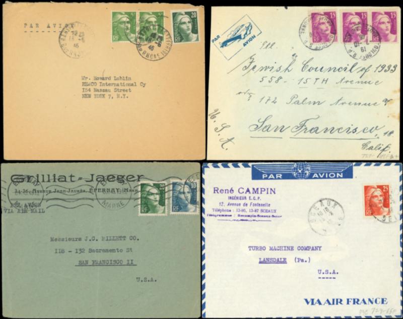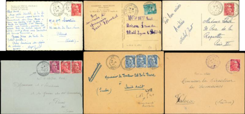Lot de 45 Lettres ou CP du XXe siècle, affranchissements et oblitérations divers, présentées sur leur fiche de vente sur offres (prix de départ 2635 Euros), TB (Image)
