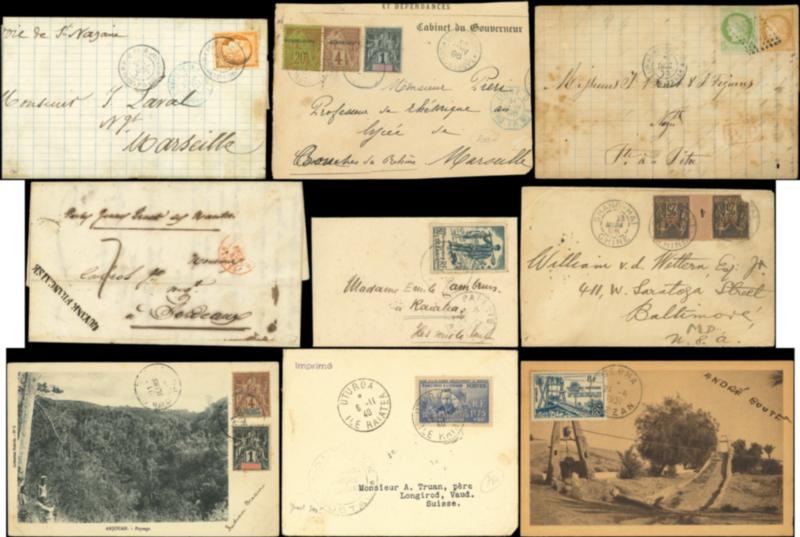 Colonies, 43 Lettres ou documents en majorité semi-modernes, affranchissements et oblitérations divers, tous pays, dans l'ensemble TB (Image)