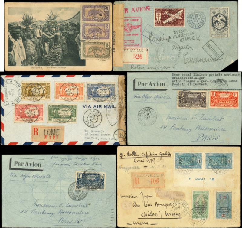 Lot de 23 Lettres ou documents, affranchissements divers des pays de l'A.E.F., 1901-47, lot varié, TB (Image)