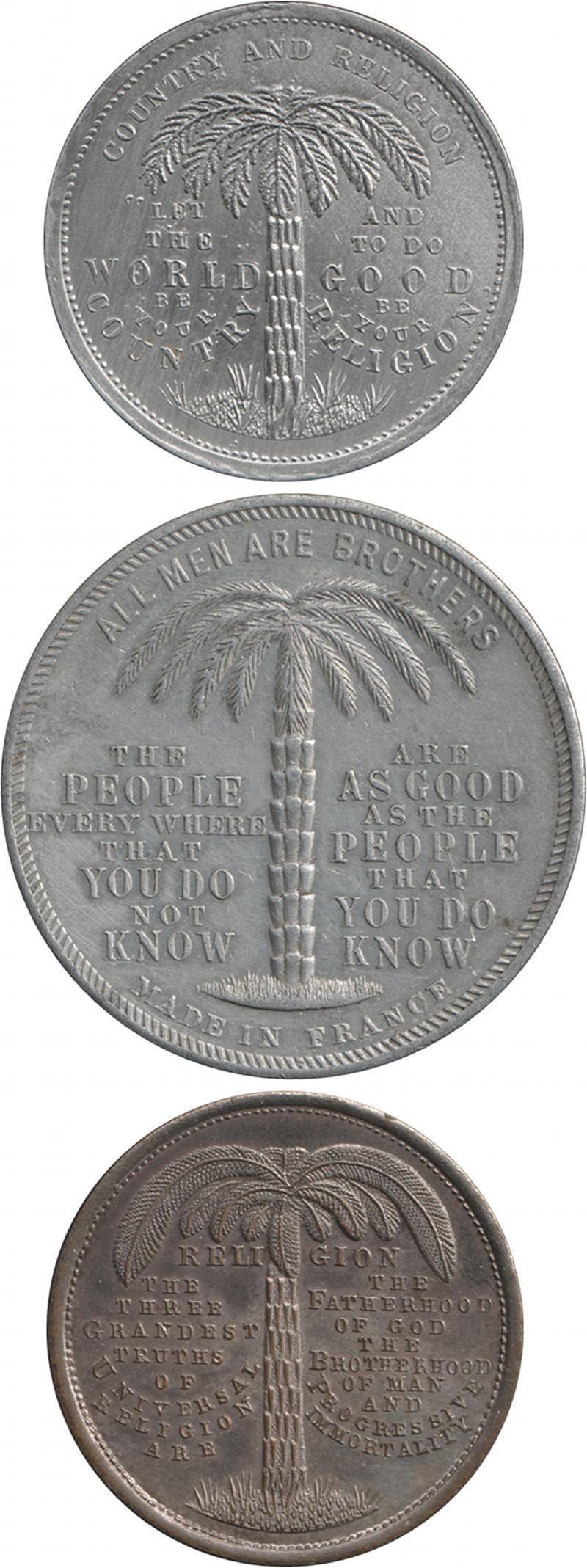 AUSTRALIA: E W Cole (Cole Book Arcade) business tokens collection circa 1879-1903 with various maxims or proverbs in 2"x2" album each with George Dean and Chitty catalogue numbers, includes 'A Knowledge of Truth' (holed) D9 (R6), C8; 'Let the World be Your Country' D44 (R5), C32; 'A New Commandment' D51 (R6), C64; 'The Three Grandest Truths' D56 (R5), C40; 'A Federated World' D85 (R5) C72; 'Wasted Wealth' D88 (R4); C75' 'All Men are Brothers' D86 (R4) & D87 (R6), C73-74; 'E W Cole aged 55' (copper) D97 (R5), C80; condition variable, some holed.