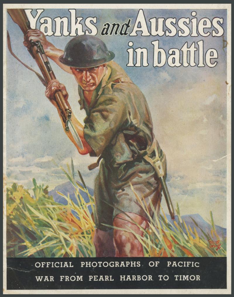 LITERATURE: Carton of WWII military publications including six contemporary aerial reconnaissance maps of PNG, recruitment brochures, several large-scale fold-out maps, 'Orders for the AIF', 'The Battle of Egypt: the Official Record', 'The AIF in Malaya: Grim Glory', 'Yanks & Aussies in Battle: Official Photographs of Pacific War...', 'How Russia Smashed its Fifth Column', 'The Jews & the War' with frontispiece of General John Monash, etc, condition generally fine; also WWI 'How the Germans Treated Australian POWs' (cover detached); plus a folio of 100+ Australian wartime cartoons blending propaganda politics & social commentary, all on newsprint affixed to modern backing paper. A fascinating & historically valuable lot. Weighs 8kg.